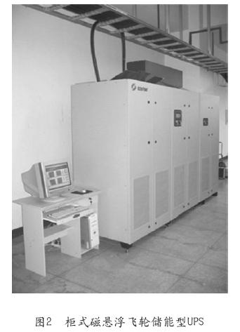 而磁悬浮式飞轮储能UPS系统则无需空调来制冷,节省了运营电费成本;而且,其占用的空间也大幅减小;维护成本低,更不需更换电池;寿命长达20年。图2是一款柜式磁悬浮飞轮储能型UPS的外观: